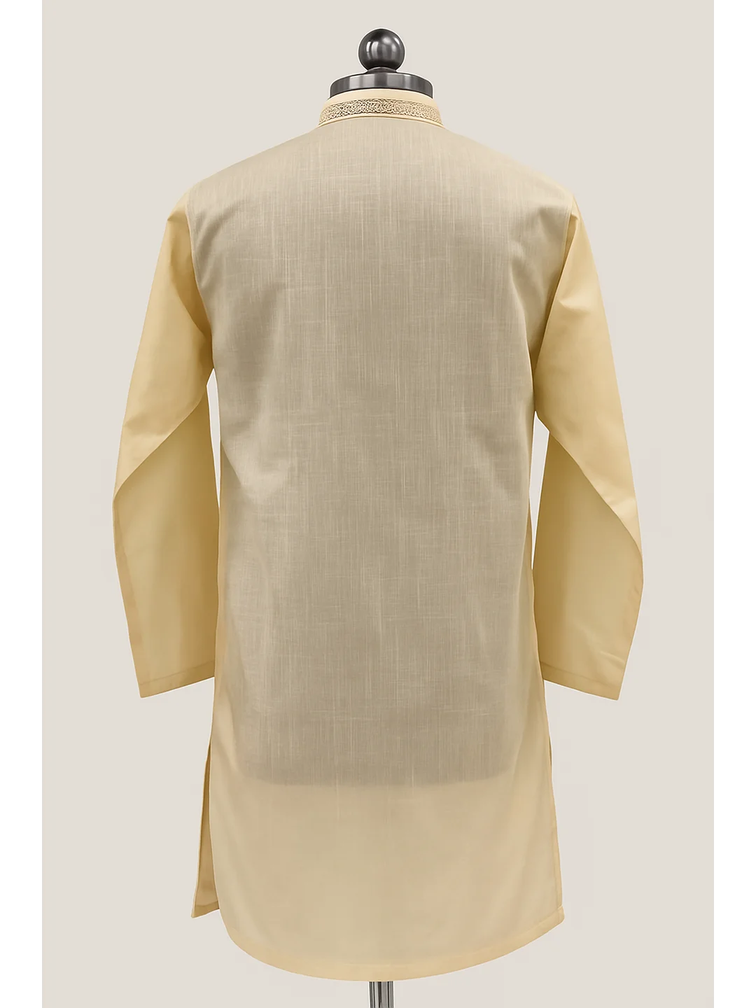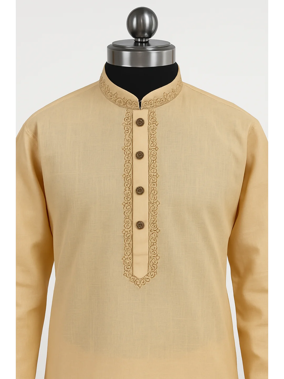 Khadi Cotton Embroidery Kurta – Dark Beige Bring home the elegance of handcrafted tradition with our Khadi Cotton Embroidery Kurta in Dark Beige, designed for comfort and sophistication.