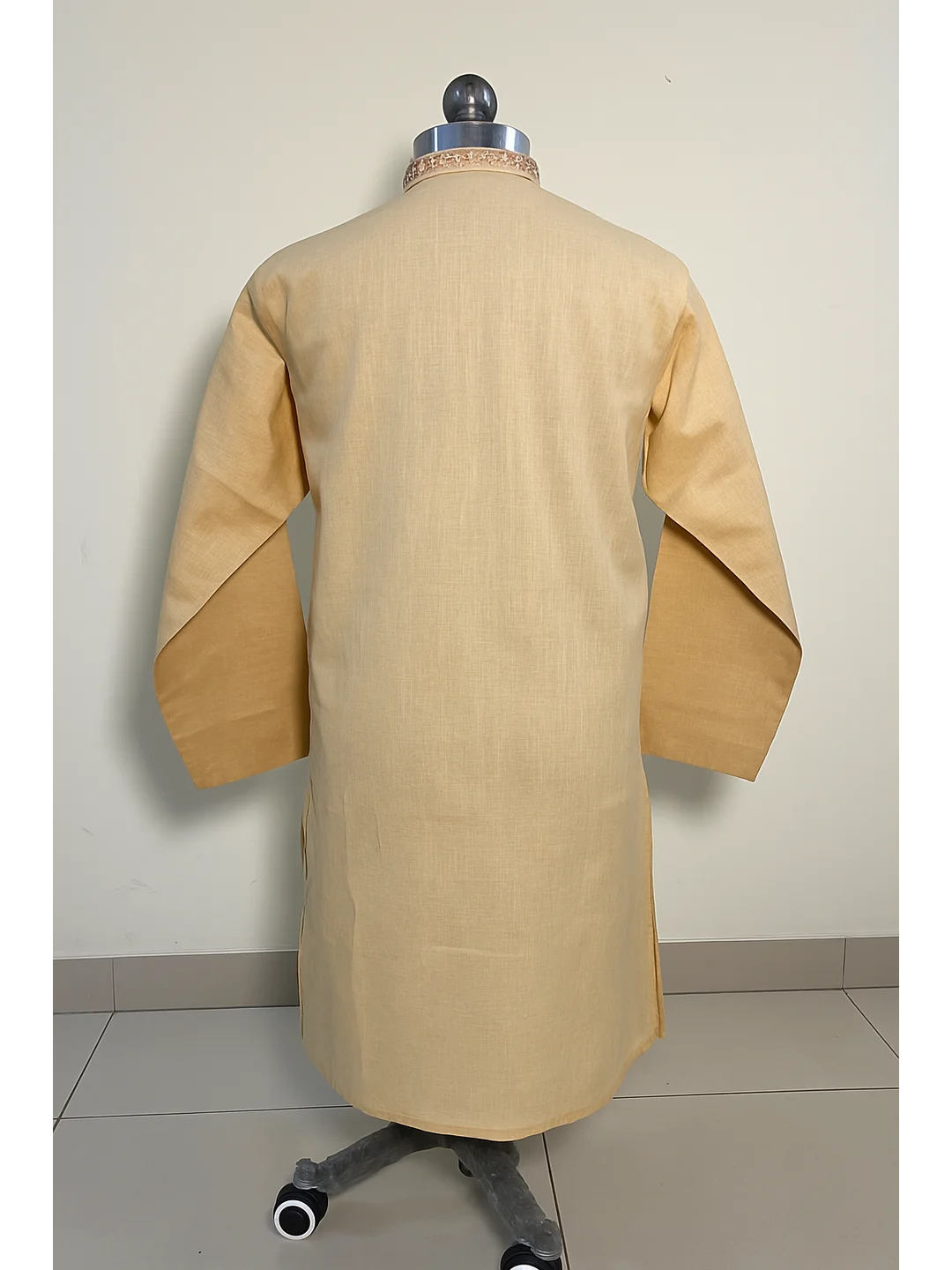 Khadi Cotton Embroidery Kurta – Dark Beige Bring home the elegance of handcrafted tradition with our Khadi Cotton Embroidery Kurta in Dark Beige, designed for comfort and sophistication.
