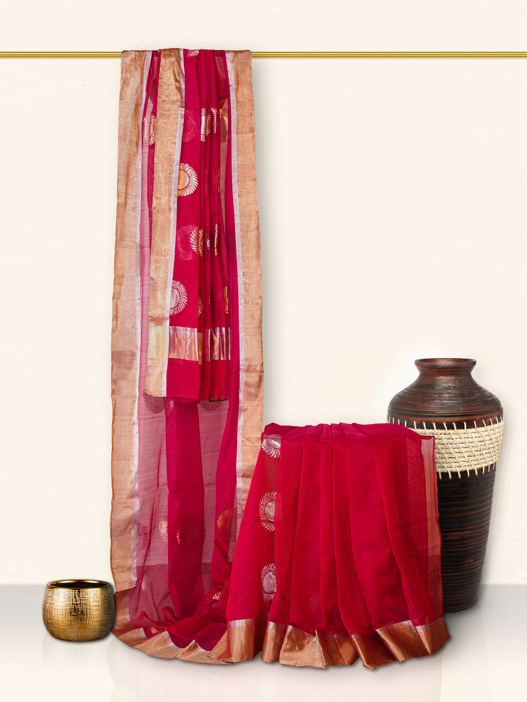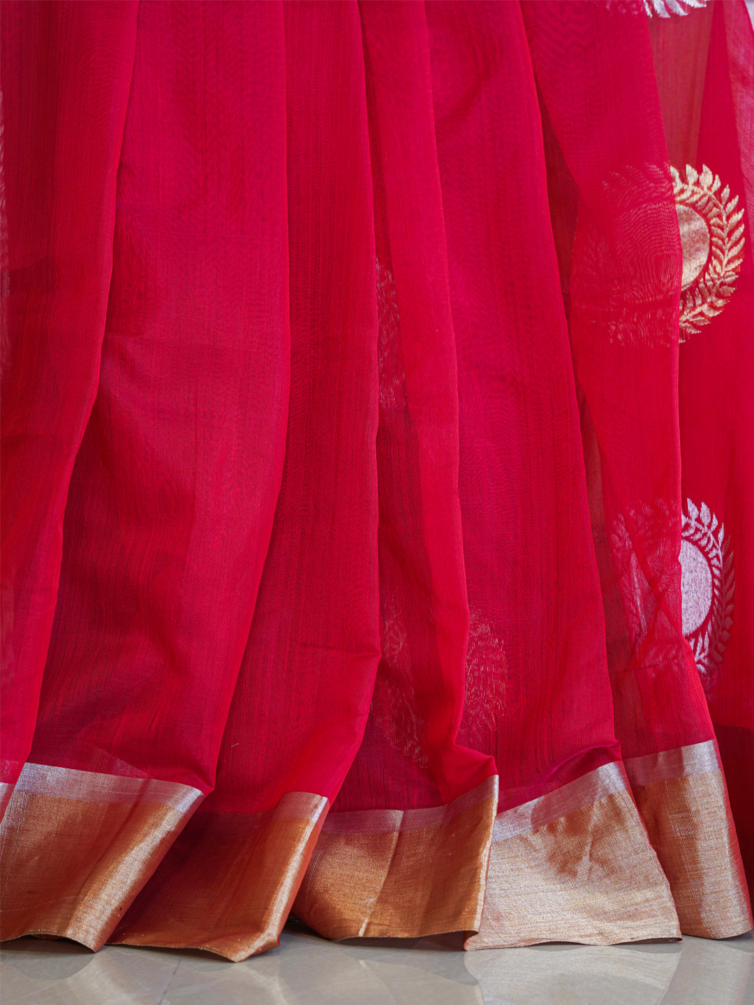 Due to the handcrafted nature of this saree, slight variations in design and color may occur. Size of the object in the image may not be the exact representation.