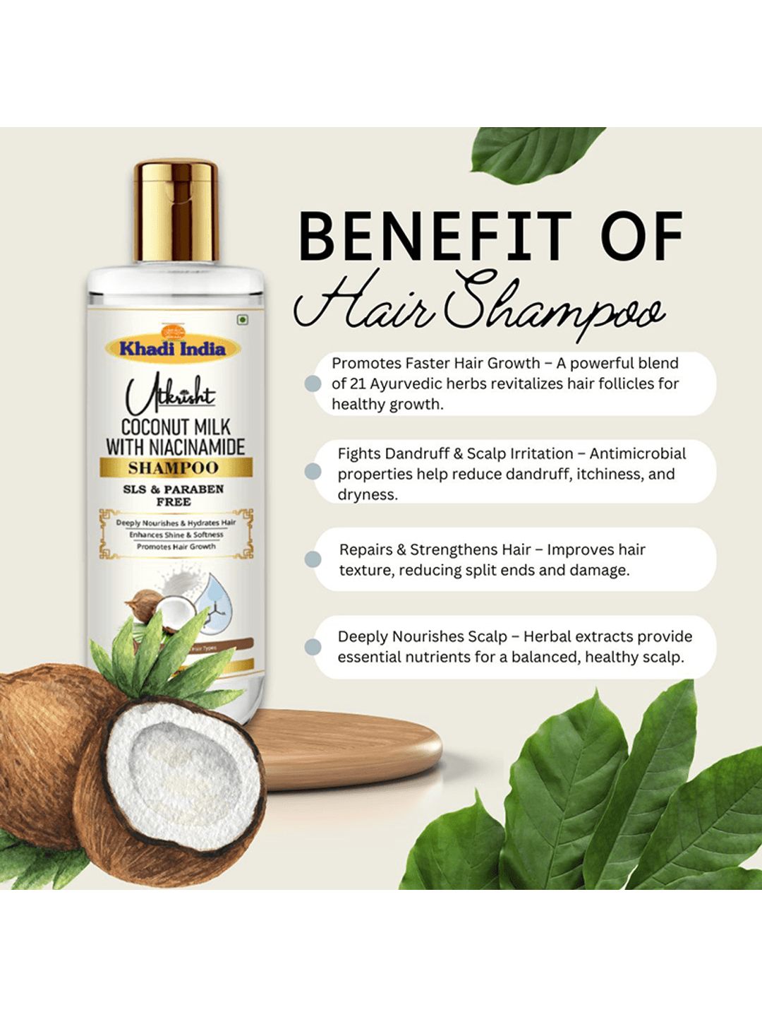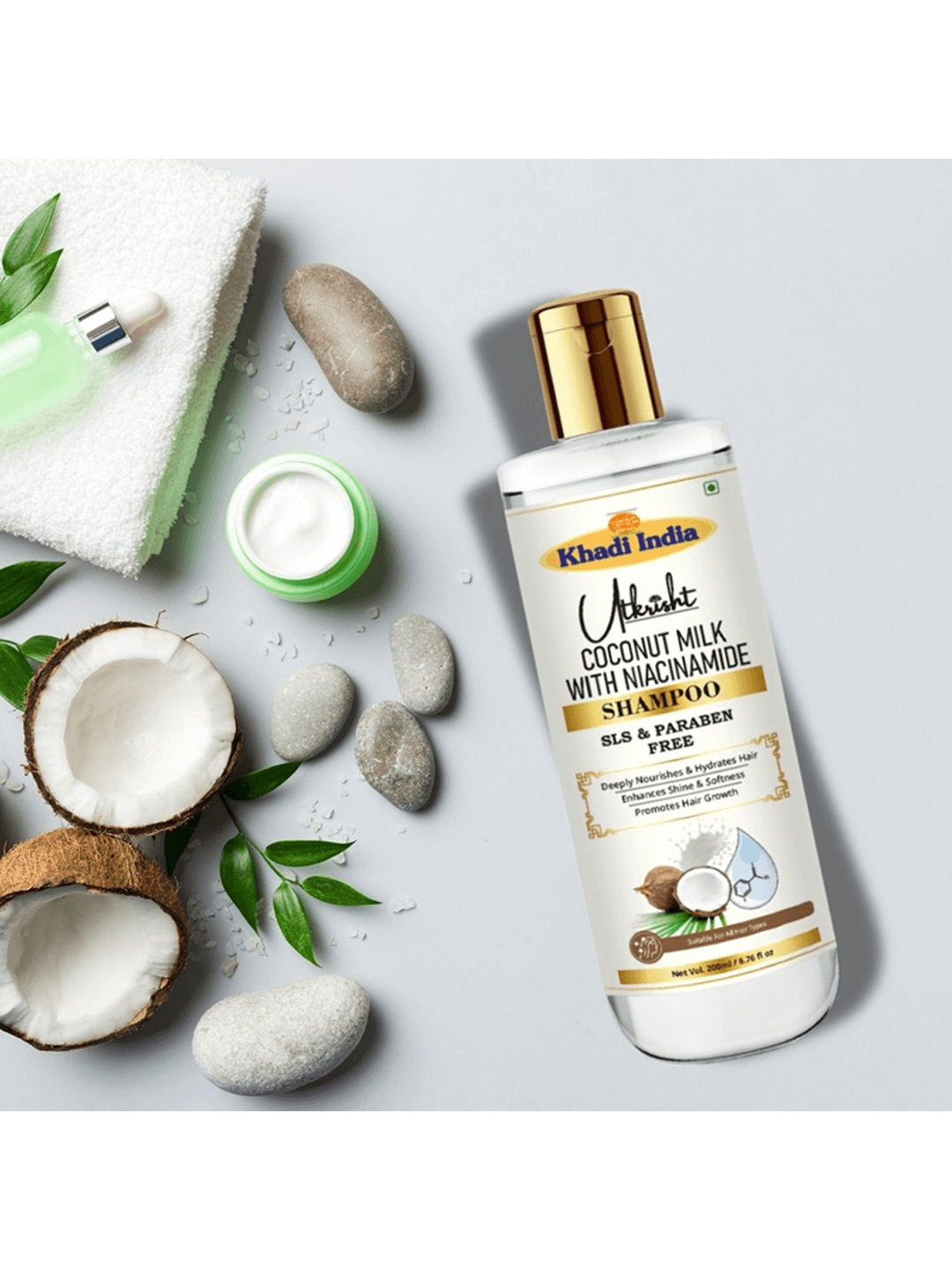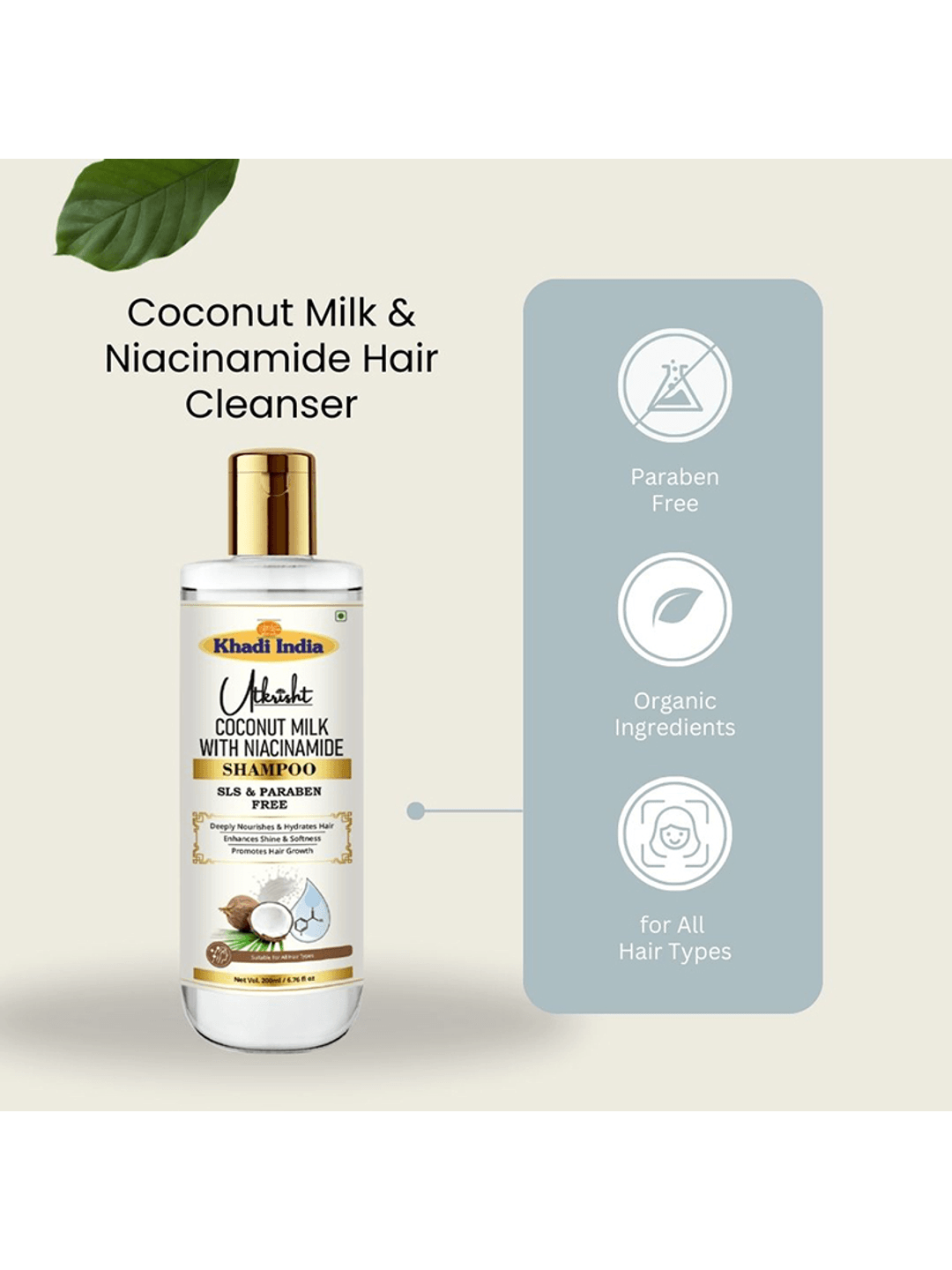 Give your hair the hydration it craves with Khadi Hydrating Coconut Milk with Niacinamide Shampoo, a deeply nourishing, sulfate- and paraben-free formula designed to restore moisture, reduce frizz, and improve overall hair health. Powered by Coconut Milk and Niacinamide (Vitamin B3), this gentle shampoo leaves your hair soft, smooth, and manageable from root to tip.