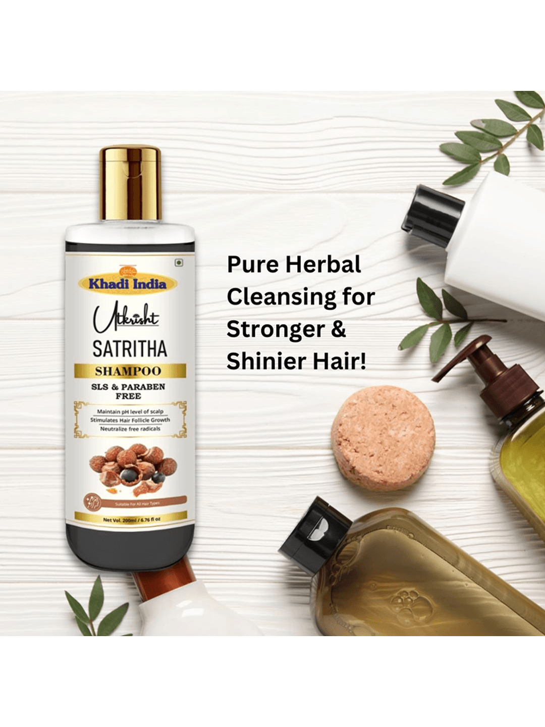 Cleanse your hair the natural way with Khadi Satritha Shampoo, enriched with the goodness of Satritha (Reetha)—a traditional Ayurvedic herb known for its gentle yet effective cleansing properties. This SLS and paraben-free formula helps maintain healthy, shiny hair without exposing your scalp to harsh chemicals.